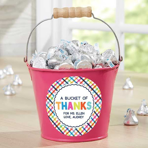 Bucket of Thanks Personalized Pink Mini Metal Bucket | Personalized wine bottles, Teacher gifts ...