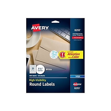 Avery Printable Laser/Inkjet Round Labels with Sure Feed, 2.5" Diameter, Glossy White, 90 Labels Per Pack (22830)