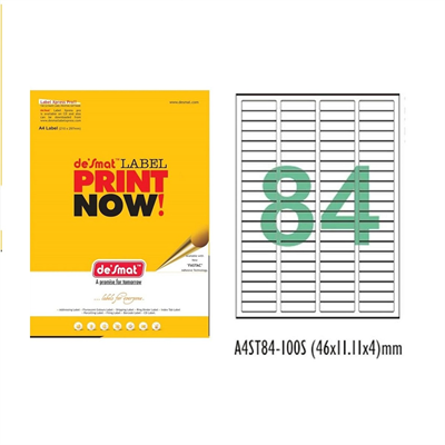 Desmat A4 Size Paper Labels For Laser, Inkjet & Copiers (65 ... - Amazon These A4 size label sheets from Desmat can be used for addressing, parceling, shipping, coding, labeling and packaging, etc. These self-sticking labels are provided with premium quality adhesives. They can withstand laser printing or Inkjet and strand grip-on most surfaces. THese are made in India product. Vey high quality product